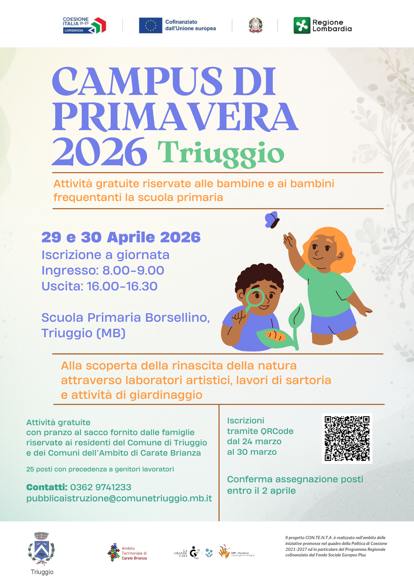 Il Campus, a frequenza gratuita, è rivolto alle famiglie dell’Ambito di Carate Brianza, di cui fa parte anche il Comune di Triuggio.