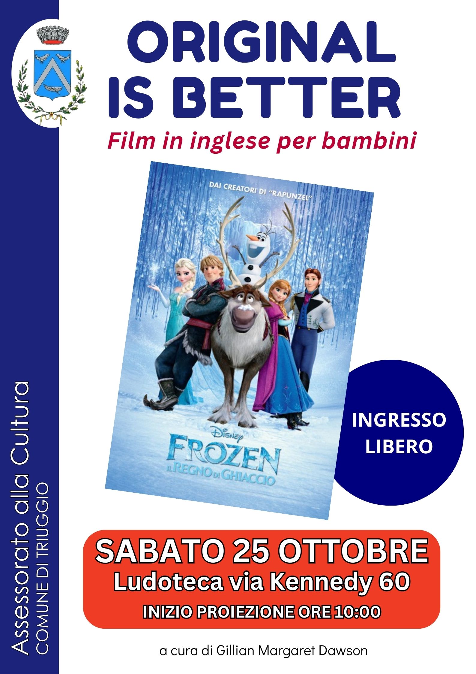 L’Assessorato alla Cultura promuove la rassegna “Original is better” che prevede la proiezione di film in lingua inglese per bambini curati dalla madrelingua inglese Gillian Margaret Dawson