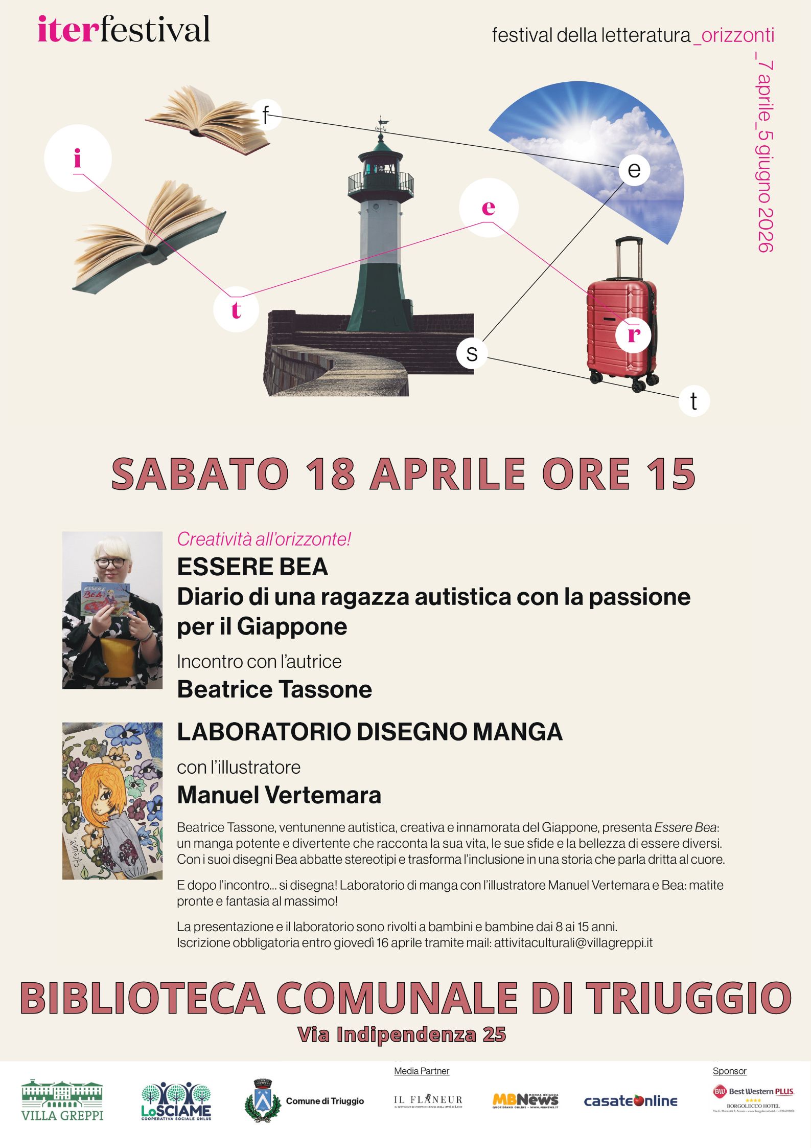 Per maggiori dettagli sugli incontri a Triuggio, e su tutte le altre tappe del festival nelle biblioteche brianzole, consulta le locandina qui allegate o vai sul sito del Iterfestival 2026 (questo link si aprirà in una nuova finestra)