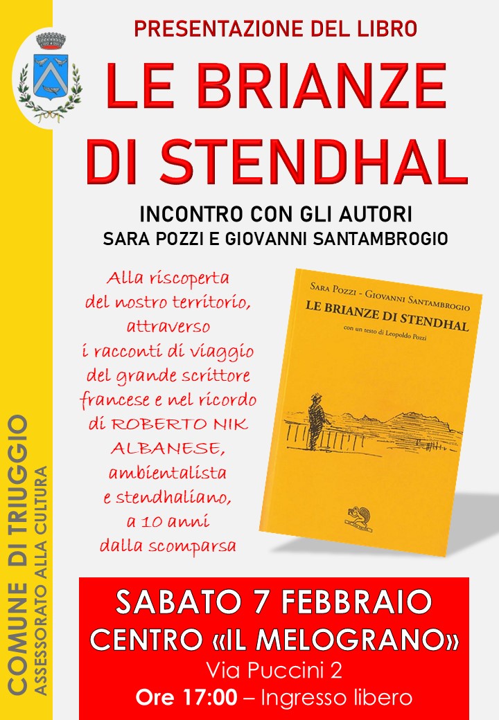 L’Assessorato alla Cultura organizza la presentazione del libro “Le Brianze di Stendhal”: una giornata alla riscoperta del nostro territorio attraverso i racconti del grande scrittore francese raccolti dagli autori Sara Pozzi e Giovanni Sant’Ambrogio.
